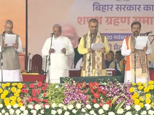 नीतीश कुमार ने बिहार के मुख्यमंत्री पद की शपथ 10वीं बार ग्रहण की। गांधी मैदान में आयोजित भव्य समारोह में प्रधानमंत्री नरेंद्र मोदी, केंद्रीय गृह मंत्री अमित शाह, भाजपा अध्यक्ष जे.पी. नड्डा सहित कई वरिष्ठ भाजपा नेता उपस्थित रहे।