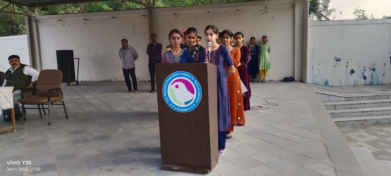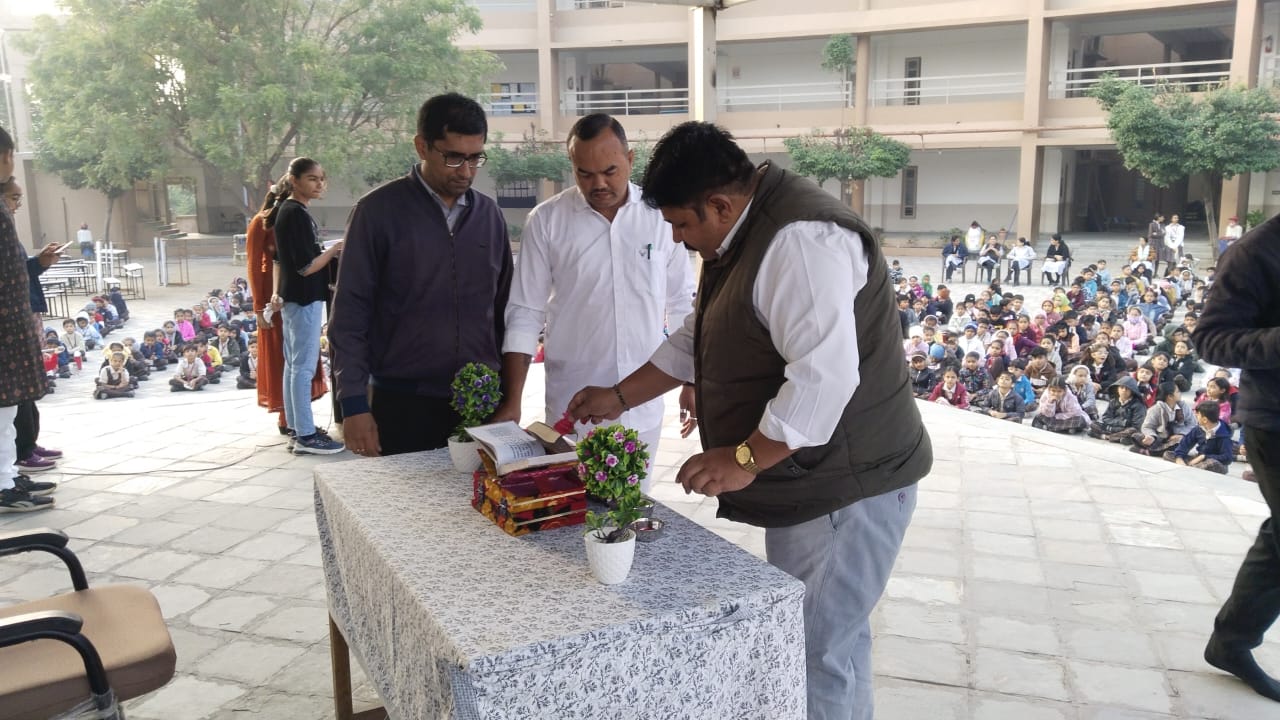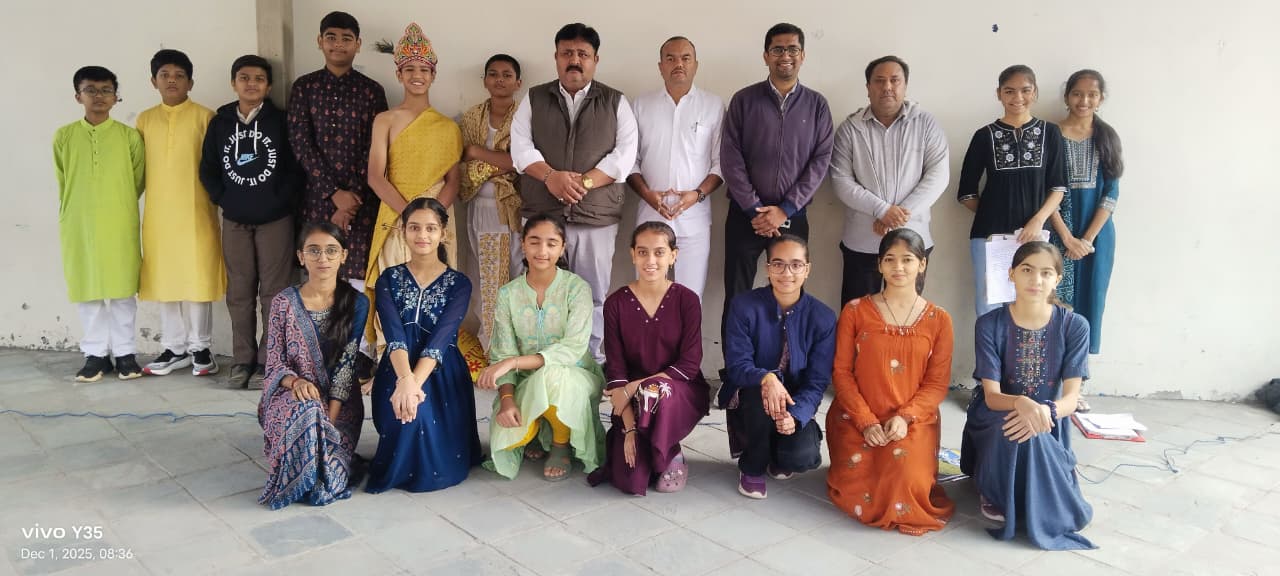 कार्यक्रम की शुरुआत प्रार्थना और श्लोकों के उच्चारण से हुई। इसके बाद विद्यालय के आचार्य श्री के. डी. राठौर और वाइस प्रिंसिपल श्री विक्की डी. सोनी ने सभी उपस्थित लोगों को गीता जयंती की हार्दिक शुभकामनाएँ दीं। अपने प्रेरणादायी संबोधन में उन्होंने भगवद गीता के जीवन मूल्यों, कर्तव्यनिष्ठा, मानवधर्म और सदाचार के सिद्धांतों पर विद्यार्थियों को मार्गदर्शन प्रदान किया। उन्होंने कहा, “भगवद गीता केवल धार्मिक ग्रंथ नहीं, बल्कि जीवन का मार्गदर्शक ग्रंथ है, जो हर परिस्थिति में स्थिरता, संतुलन और सकारात्मकता बनाए रखने की शिक्षा देता है।”