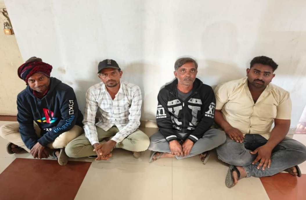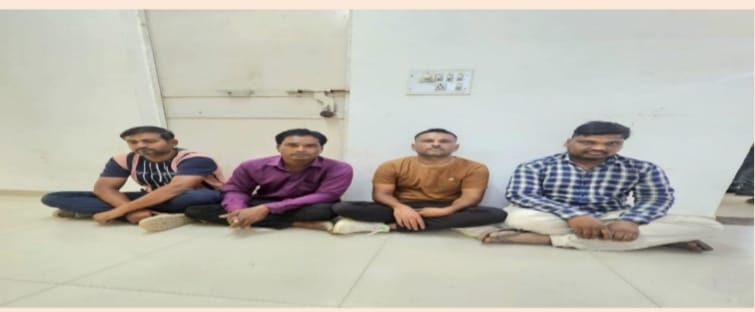 - ताश के पत्तों पर हार-जीत का जुआ खेलते 04 व्यक्तियों को ₹11,510/- नगद रकम सहित गिरफ्तार किया गया