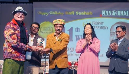 - श्री मनोरंजन म्यूज़िकल स्टूडियो द्वारा महान पार्श्वगायक मोहम्मद रफ़ी की 101वीं जन्म जयंती के अवसर पर “An Evening in Gandhinagar” शीर्षक से एक भव्य संगीतमय कार्यक्रम का आयोजन टाउन हॉल, गांधीनगर में किया गया।