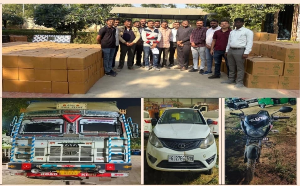 - थानेरा पुलिस स्टेशन क्षेत्र के धानेरा गांव की सीमा से क्रेटा कार नंबर GJ-20-AQ-6727 में बनाए गए गुप्तखाने से भारतीय निर्मित विदेशी शराब की बोतलें संख्या 624, कीमत रु. 1,93,668/- बरामद की गईं।