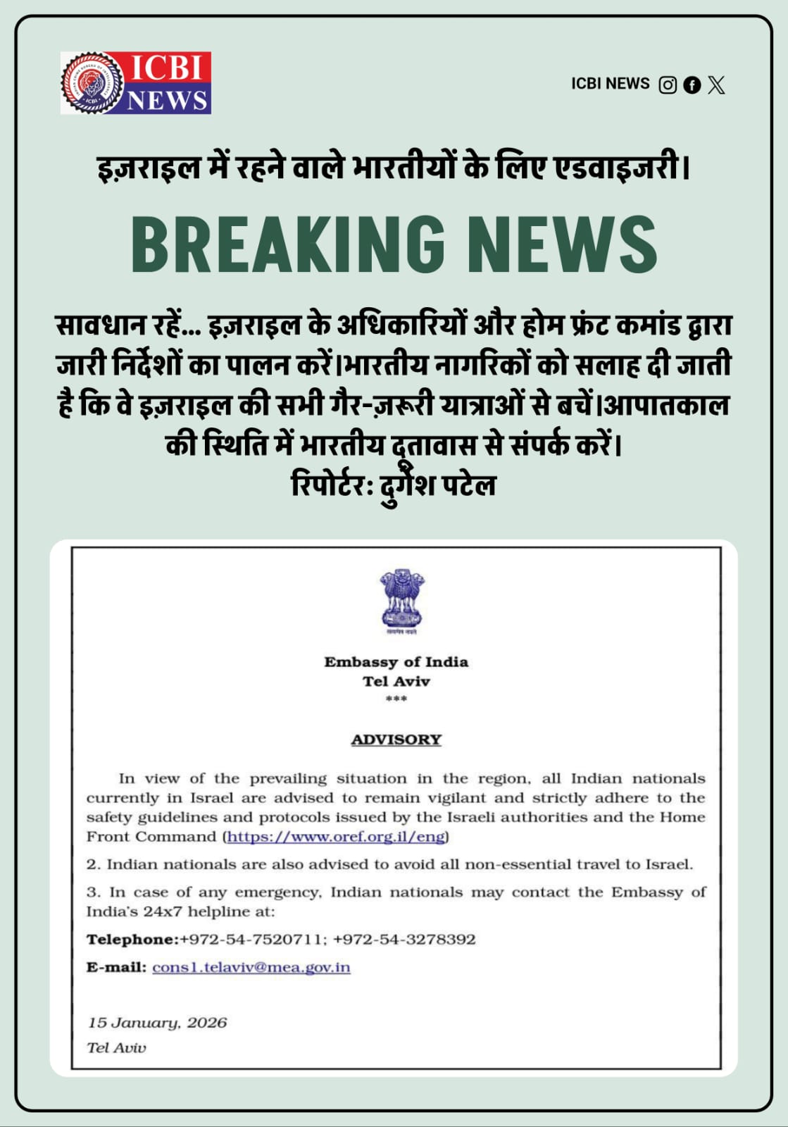 - इज़राइल में रहने वाले भारतीयों के लिए एडवाइजरी।