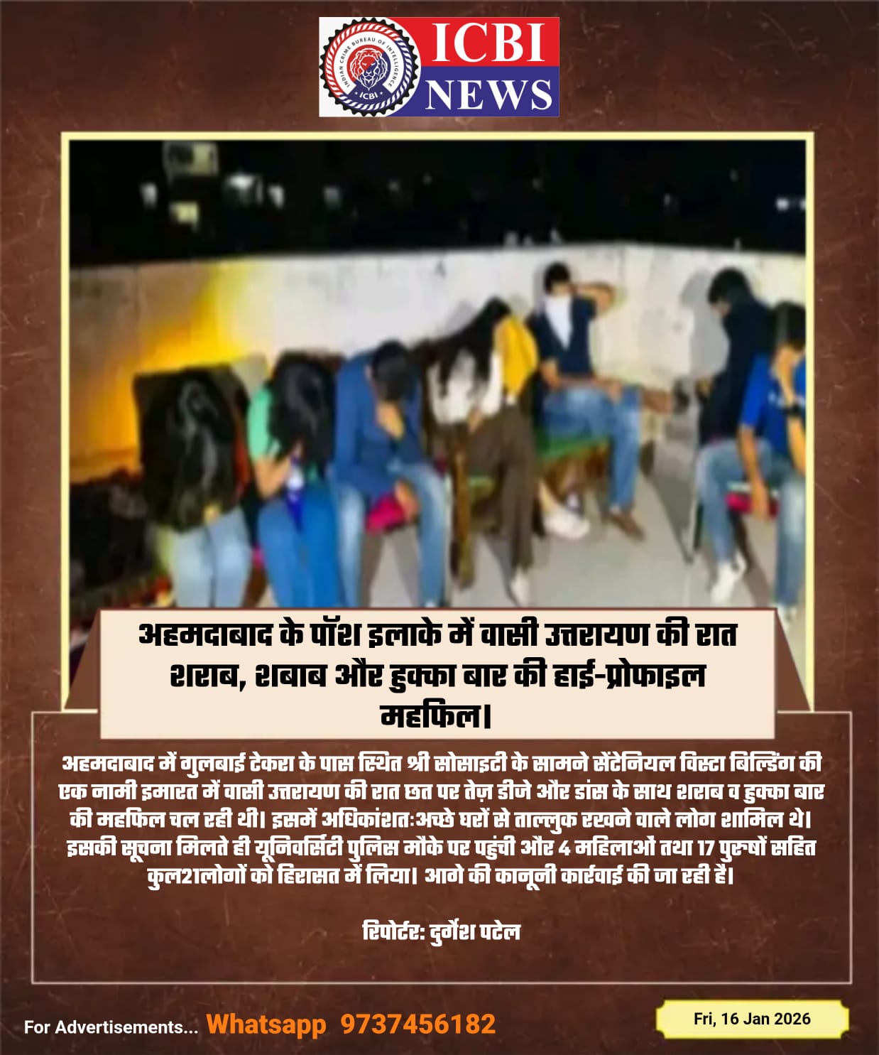 - अहमदाबाद के पॉश इलाके में वासी उत्तरायण की रात शराब, शबाब और हुक्का बार की हाई-प्रोफाइल महफिल।