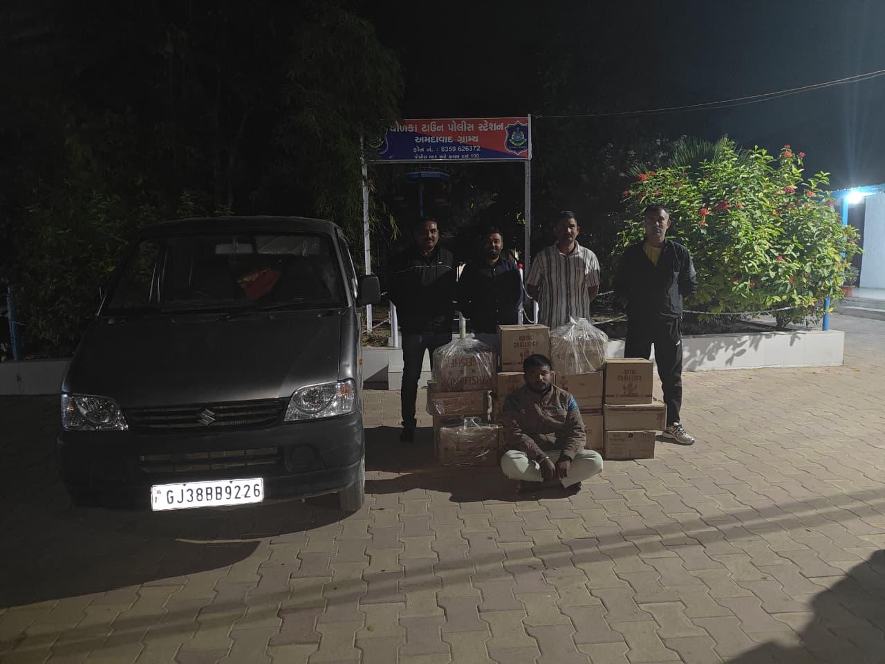 कार्रवाई के दौरान धोलका टाउन पुलिस स्टेशन क्षेत्र के धोलका टाउन–रामपुर गांव के पास नहर के समीप से आरोपी के कब्जे वाली मारुति इको कार नंबर GJ-38-BB-9226 की तलाशी ली गई, जिसमें भारतीय निर्मित विदेशी शराब की विभिन्न ब्रांड की बोतलें तथा बीयर के टीन कुल 480 नग (कीमत ₹1,00,056/-) सहित अन्य मुद्देमाल बरामद कर कुल ₹3,05,056/- का मुद्देमाल जब्त किया गया।