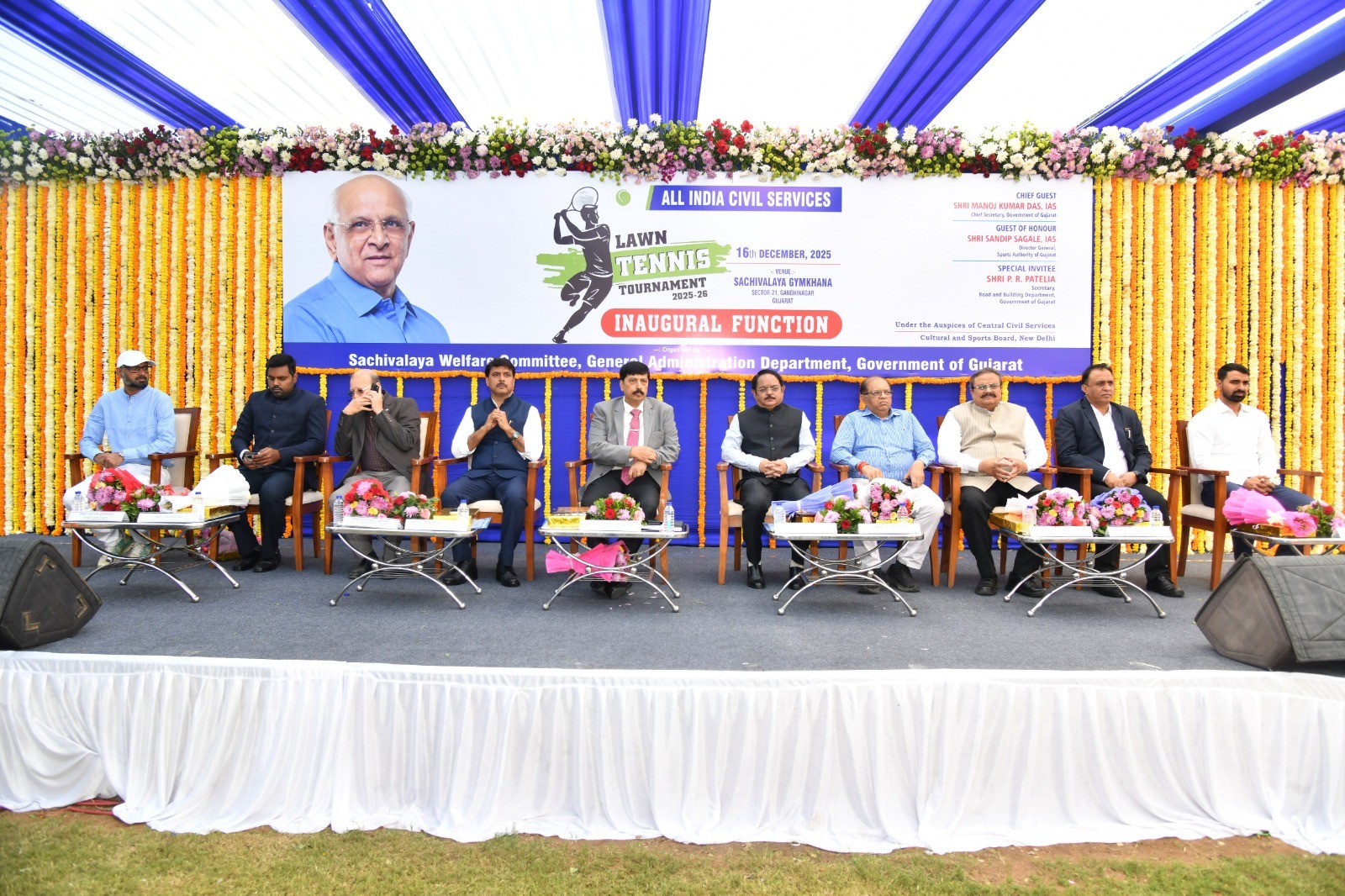 धीनगर में राज्य के मुख्य सचिव श्री एम.के. दास ने गुजरात राज्य प्रशासन सचिवालय वेलफेयर कमेटी द्वारा आयोजित अखिल भारतीय सिविल सेवा लॉन टेनिस टूर्नामेंट 2025-26 का शुभारंभ किया। यह टूर्नामेंट जिमखाना, सेक्टर-21, गांधीनगर में 16 से 22 दिसंबर के दौरान आयोजित किया जाएगा।
