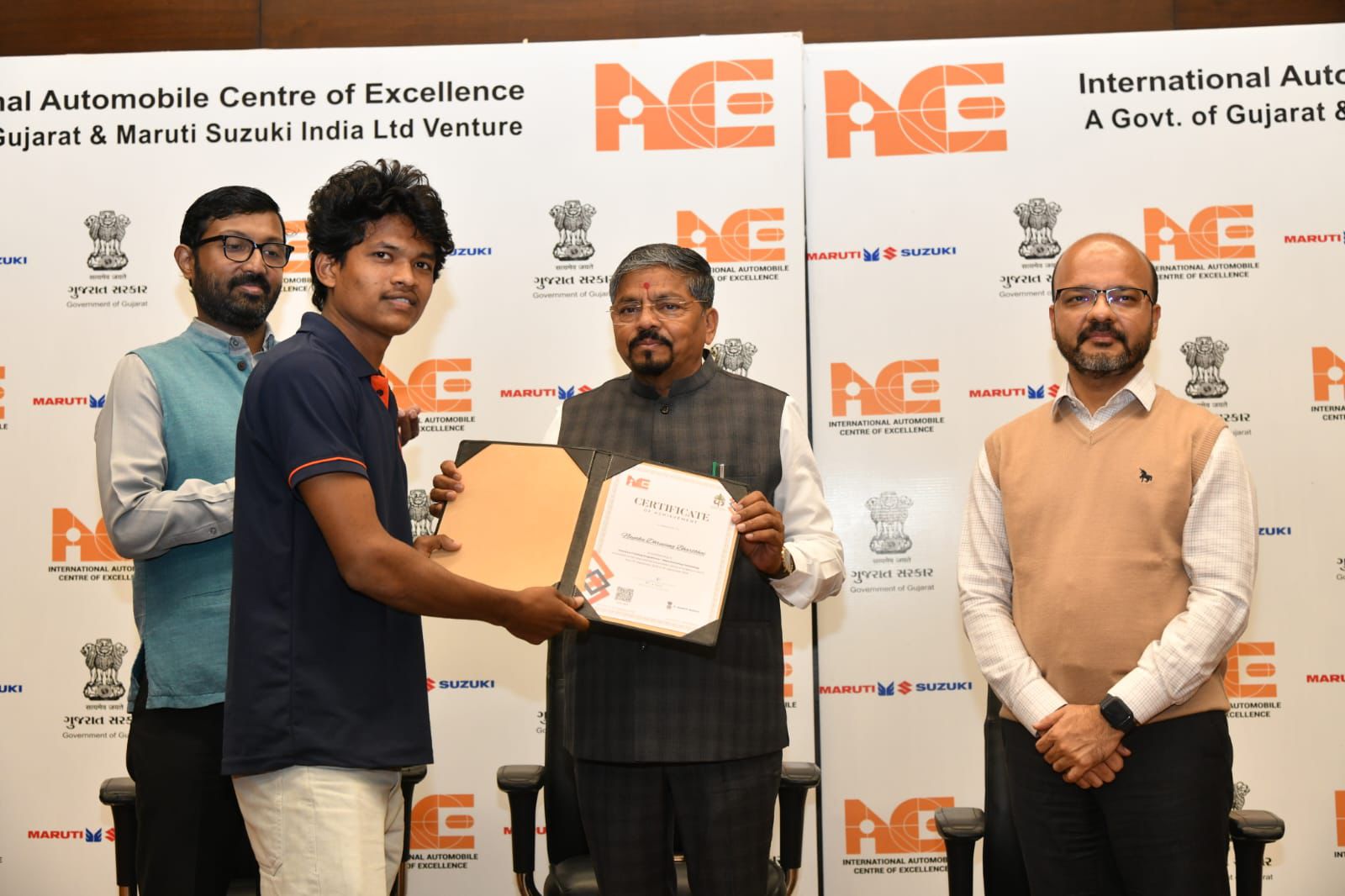 आदिवासी विकास मंत्री माननीय श्री नरेशभाई पटेल की अध्यक्षता में गांधीनगर स्थित इंटरनेशनल ऑटोमोबाइल सेंटर ऑफ एक्सीलेंस (IACE) में आयोजित समारोह के दौरान ‘इंटेंसिव ट्रेनिंग प्रोग्राम’ सफलतापूर्वक पूर्ण करने वाले कुल 376 विद्यार्थियों को प्रमाणपत्र प्रदान किए गए।