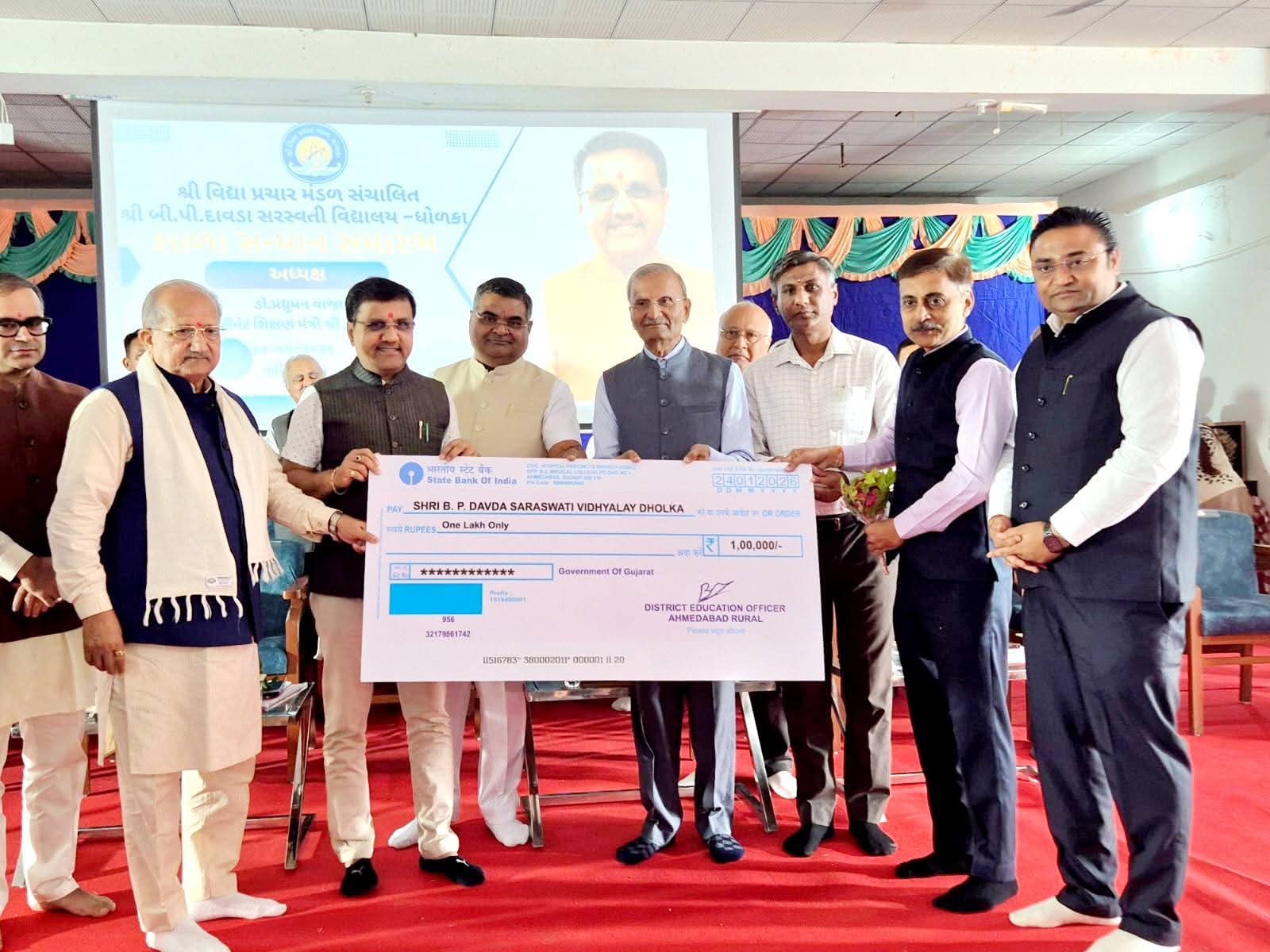 श्री विद्या प्रचार मंडल संचालित श्री बी.पी. दावड़ा सरस्वती विद्यालय, धोलका का सम्मान समारोह