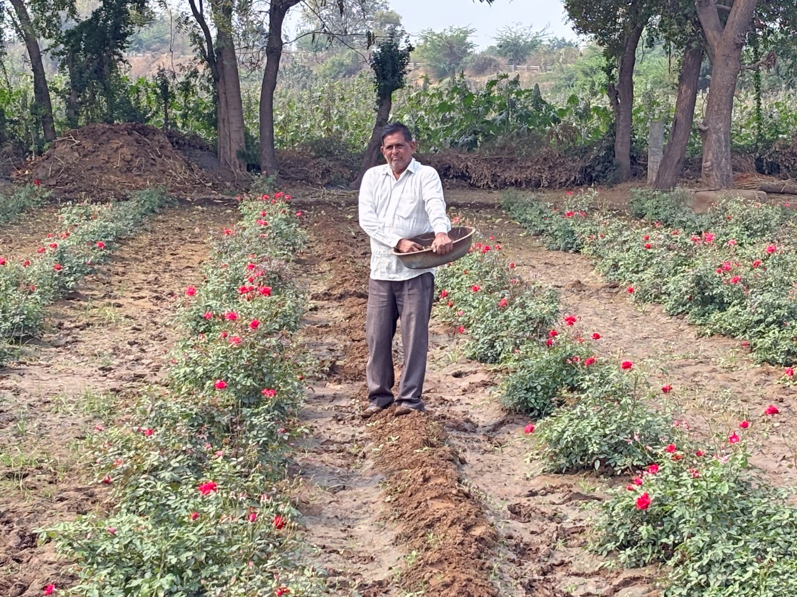 उन्होंने बताया कि गुलाब के पौधों को समय पर सिंचाई और गोबर की खाद (जैविक खाद) देने से अधिक मात्रा में और बेहतर गुणवत्ता के फूल प्राप्त होते हैं। नियमित देखरेख और छंटाई से उत्पादन में वृद्धि होती है।