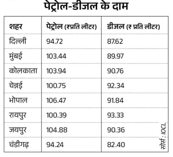 पेट्रोल-डीजल की कीमतों में बदलाव नहीं
