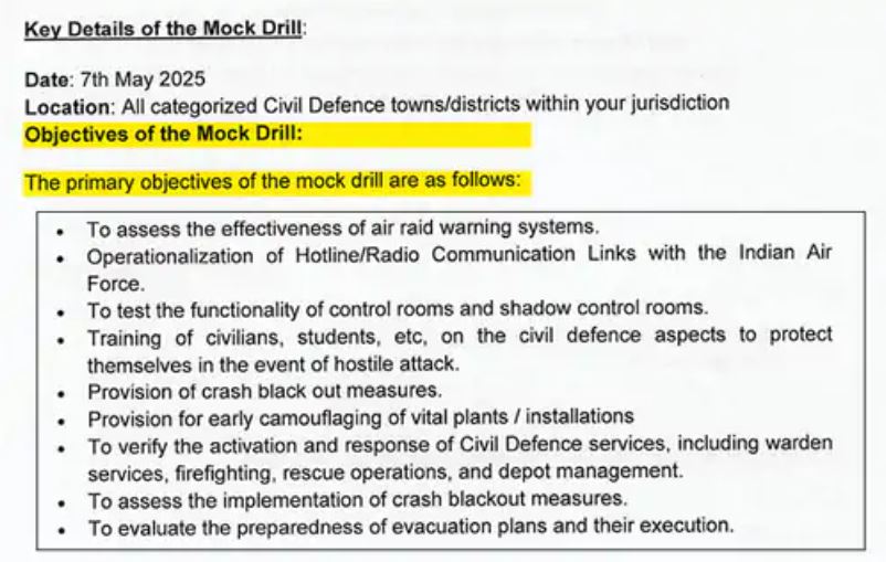 सिविल डिफेंस डिस्ट्रिक्ट्स को उनकी संवेदनशीलता के आधार पर 3 कैटेगरी में बांटा गया है। कैटगरी-1 सबसे संवेदनशील और कैटेगरी-3 कम सेंसेटिव है। गृह मंत्रालय ने 5 मई को सभी राज्यों को मॉक ड्रिल कराने के आदेश जारी किए थे।
