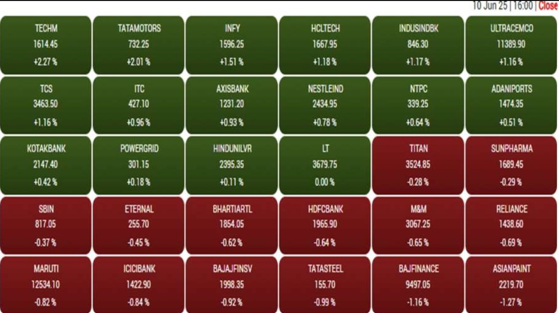 खबर के मुताबिक, आज के कारोबार में निफ्टी में ग्रासिम इंडस्ट्रीज, डॉ. रेड्डीज लैब्स, टेक महिंद्रा, टाटा मोटर्स, इंफोसिस सबसे अधिक लाभ कमाने वाले शेयरों में शामिल रहे, जबकि ट्रेंट, एशियन पेंट्स, बजाज फाइनेंस, टाटा स्टील, बजाज फिनसर्व सबसे ज्यादा लॉस वाले शेयरों के तौर पर शामिल हुए। बीएसई मिडकैप इंडेक्स में स्थिरता देखी गई, जबकि बीएसई स्मॉलकैप इंडेक्स में 0.3 प्रतिशत की बढ़ोतरी हुई।